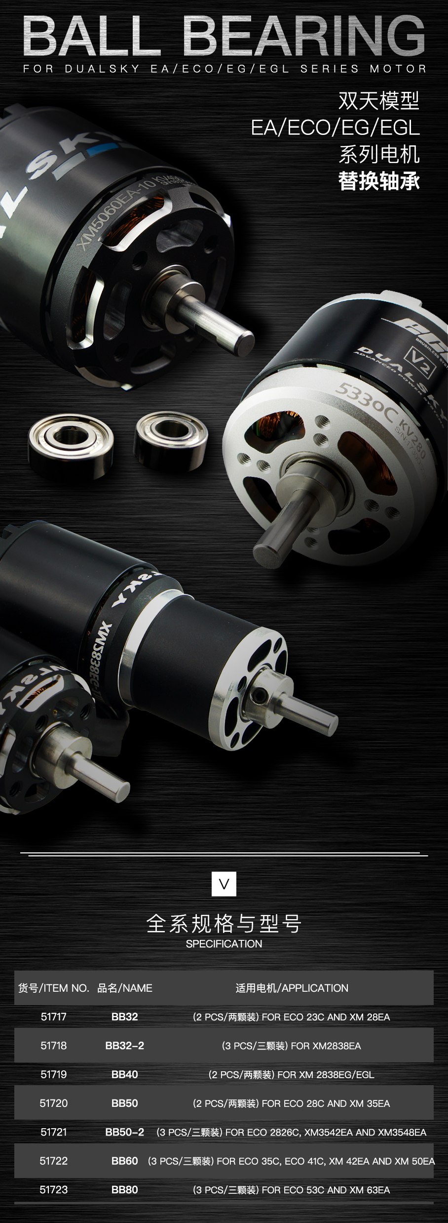 BB50, ball bearing set(2 pcs) for ECO 28C and XM 35EA |