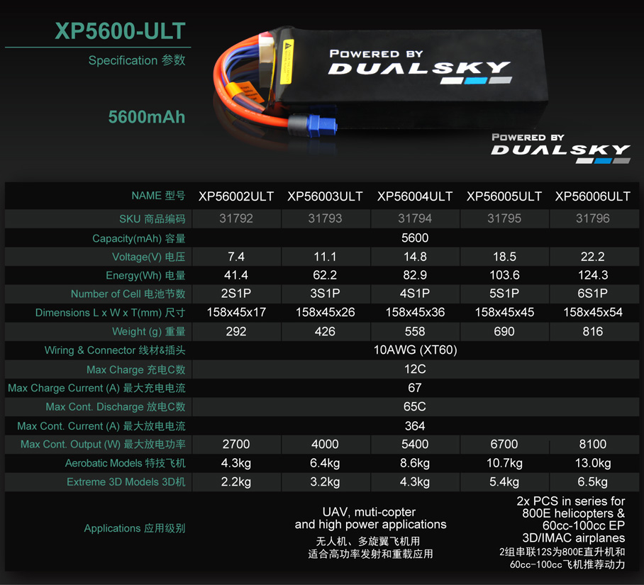 | 31794 | XP56004ULT | 5600 mAh | 14.8V | 65C |