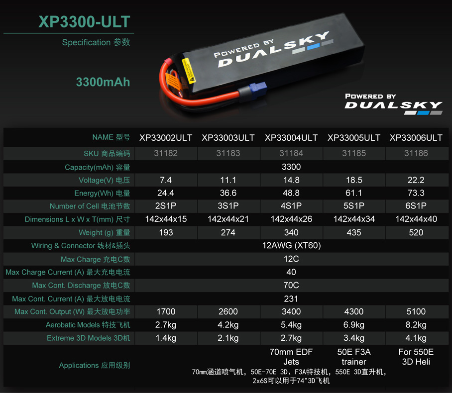| 31183 | XP33003ULT | 3300 mAh | 11.1V | 70C |