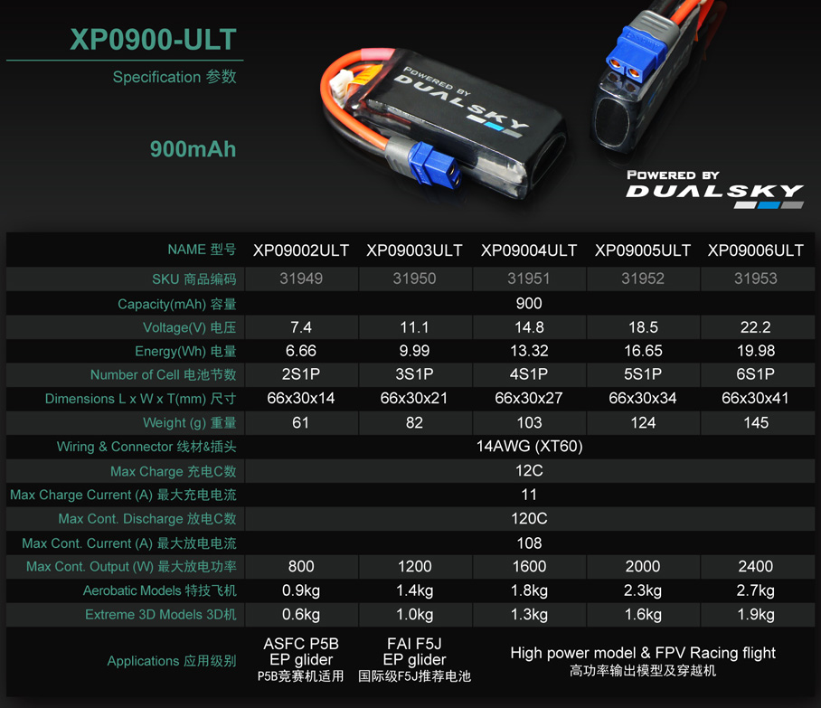 | 31950 | XP09003ULT, FAI F5J light, NEW | 900mAh | 11.1V | 120C |