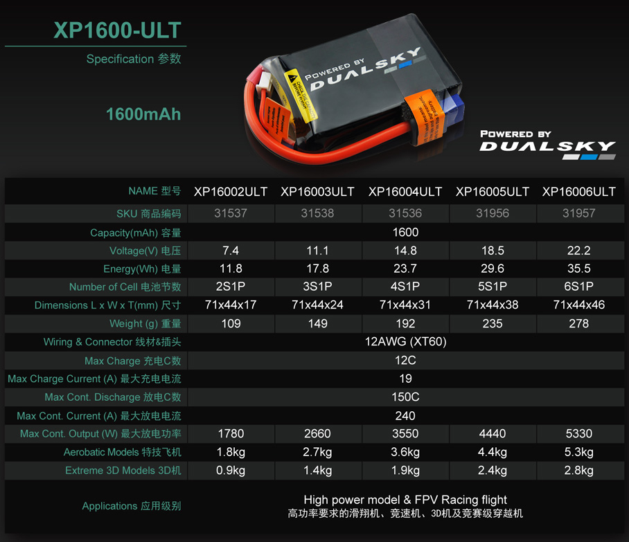 | 31956 | XP16005ULT, NEW | 1600mAh | 18.5V | 150C |